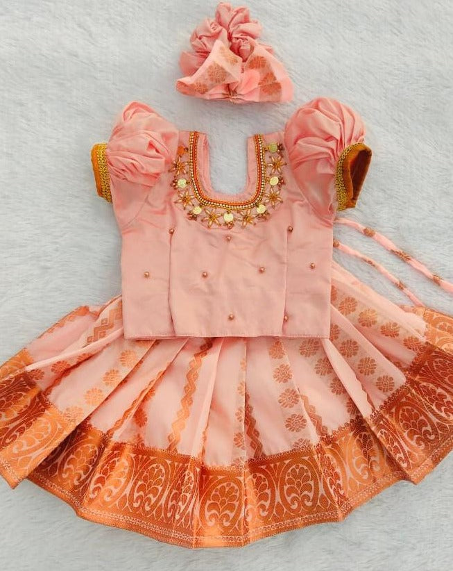 Peach Pattu pavada