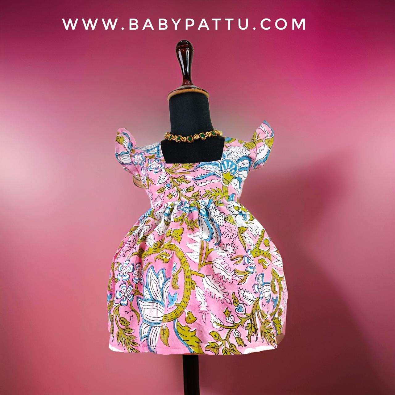 Pattu Pavadai is a traditional dress of South India. The paavadai or langa is a cone-shaped, long skirt that is pleated and tied around the waist, normally made of silk, that hangs down from the waist to the toes.