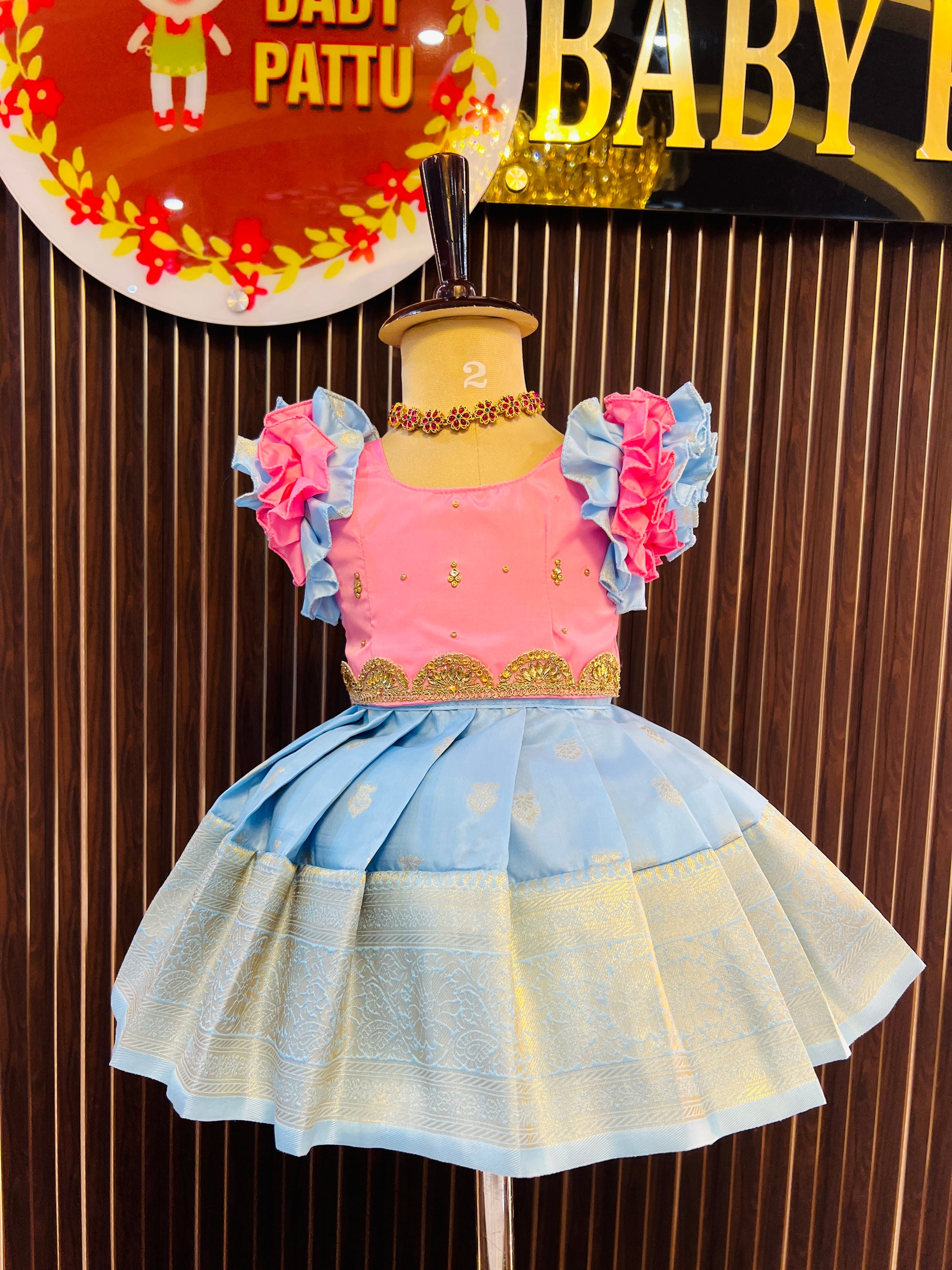 Babypink & Sky blue Diwali Collection Pattu pavada
