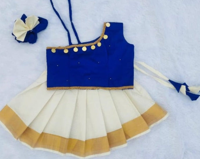 Blue and Kerala White Pattu pavada