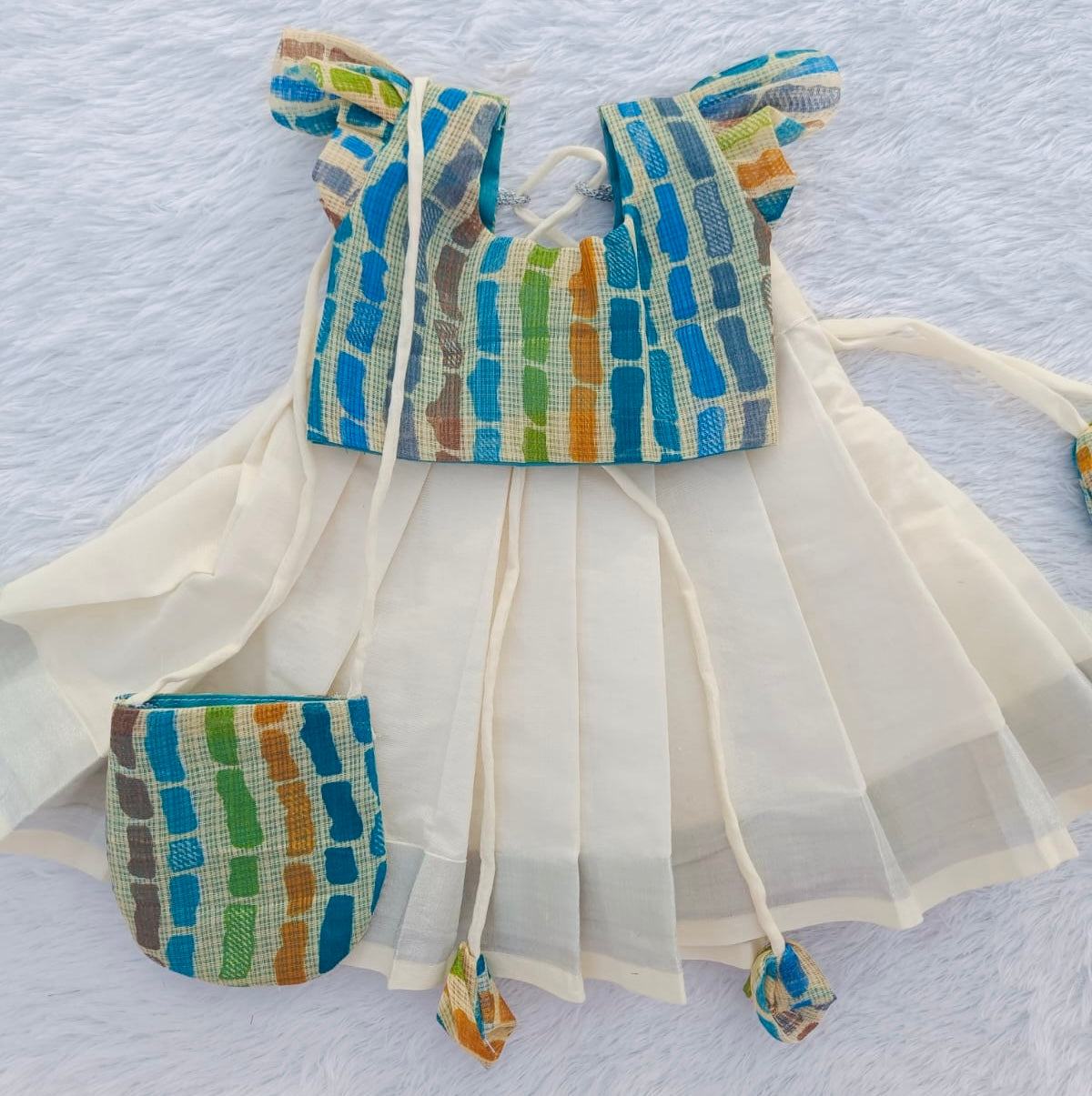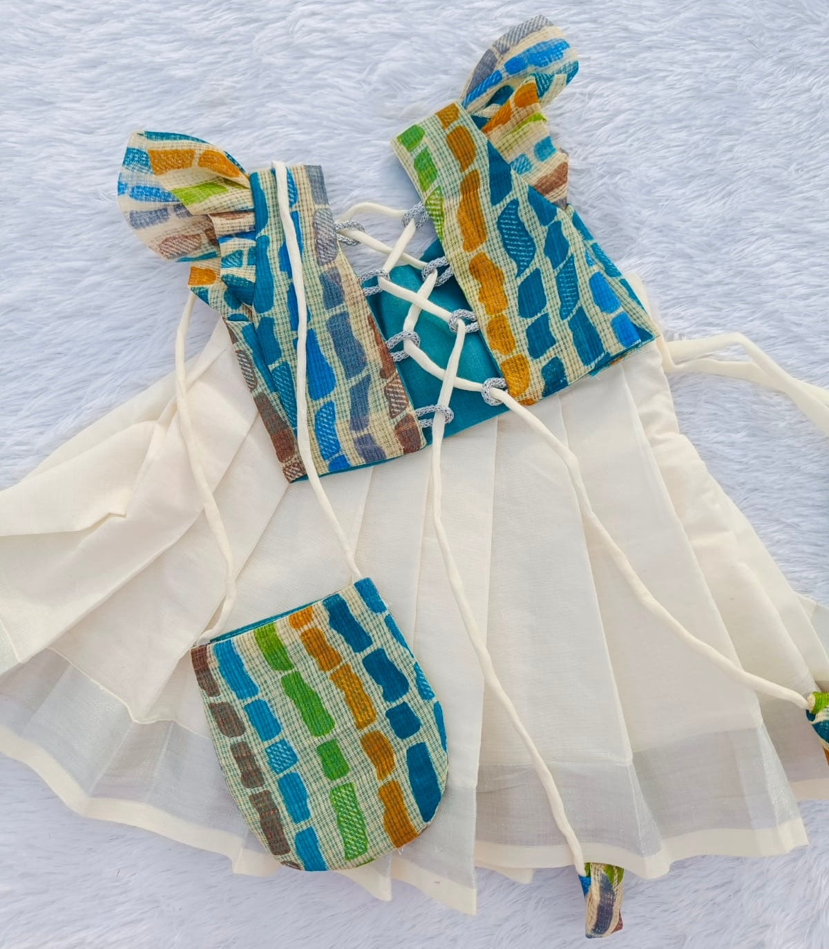 💎💎Blue & Green Kota Cotton Top & Kerala Cotton Pattu Pavada 💎💎
