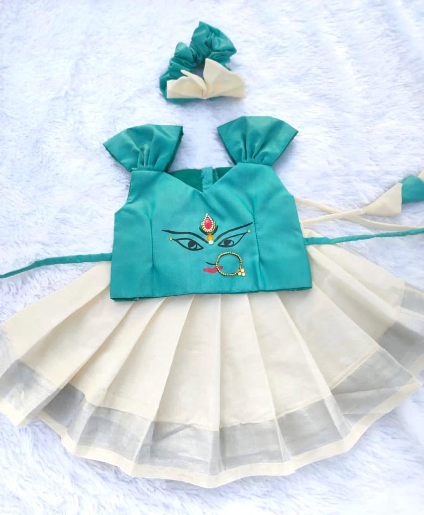 Pattu Pavadai is a traditional dress of South India. The paavadai or langa is a cone-shaped, long skirt that is pleated and tied around the waist, normally made of silk, that hangs down from the waist to the toes.