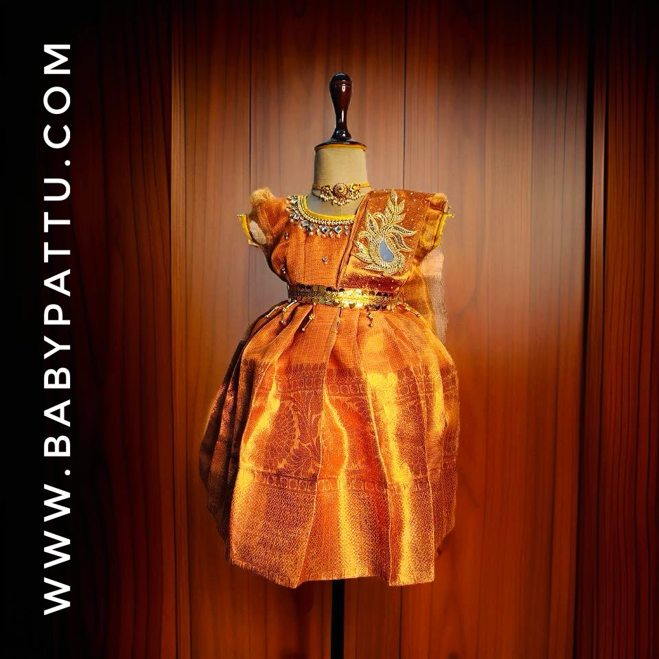 CopperTissue Silk Princess Frock with Detachable Dupatta