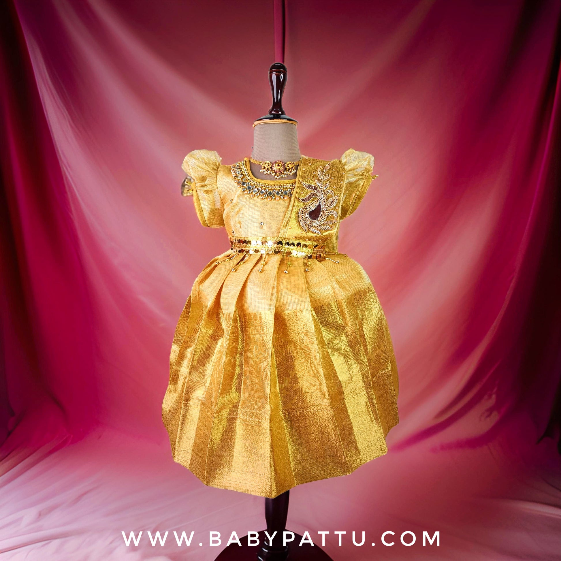 Gold Tissue Silk Princess Frock with Detachable Dupatta