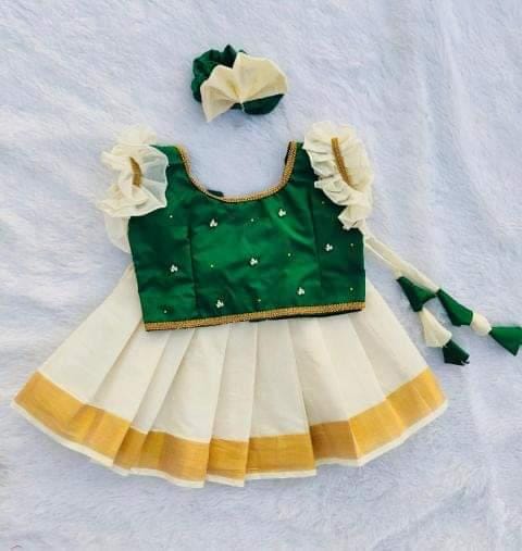 Pattu Pavadai is a traditional dress of South India. The paavadai or langa is a cone-shaped, long skirt that is pleated and tied around the waist, normally made of silk, that hangs down from the waist to the toes.