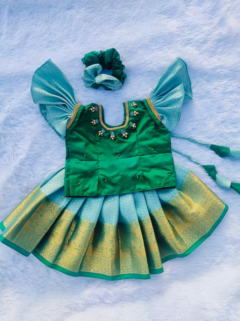 Green and Sky blue Pattu pavada