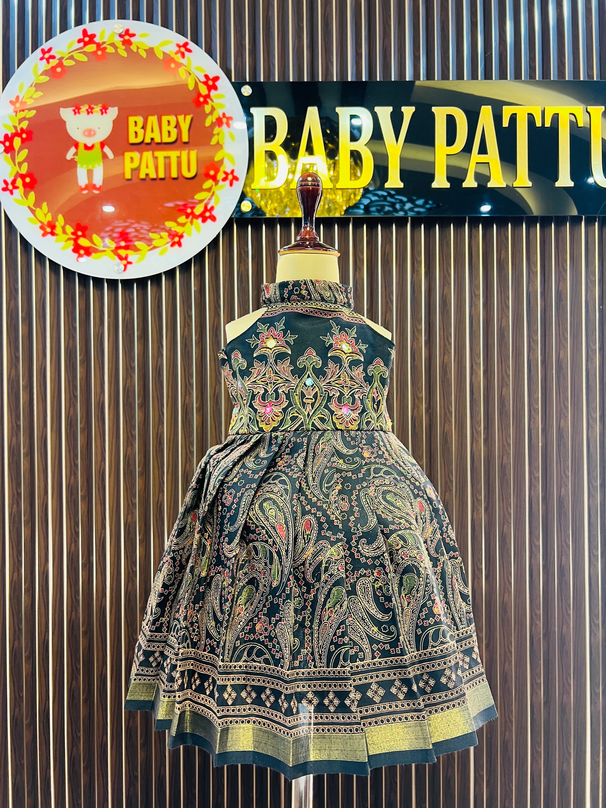 Pattu Pavadai is a traditional dress of South India. The paavadai or langa is a cone-shaped, long skirt that is pleated and tied around the waist, normally made of silk, that hangs down from the waist to the toes.