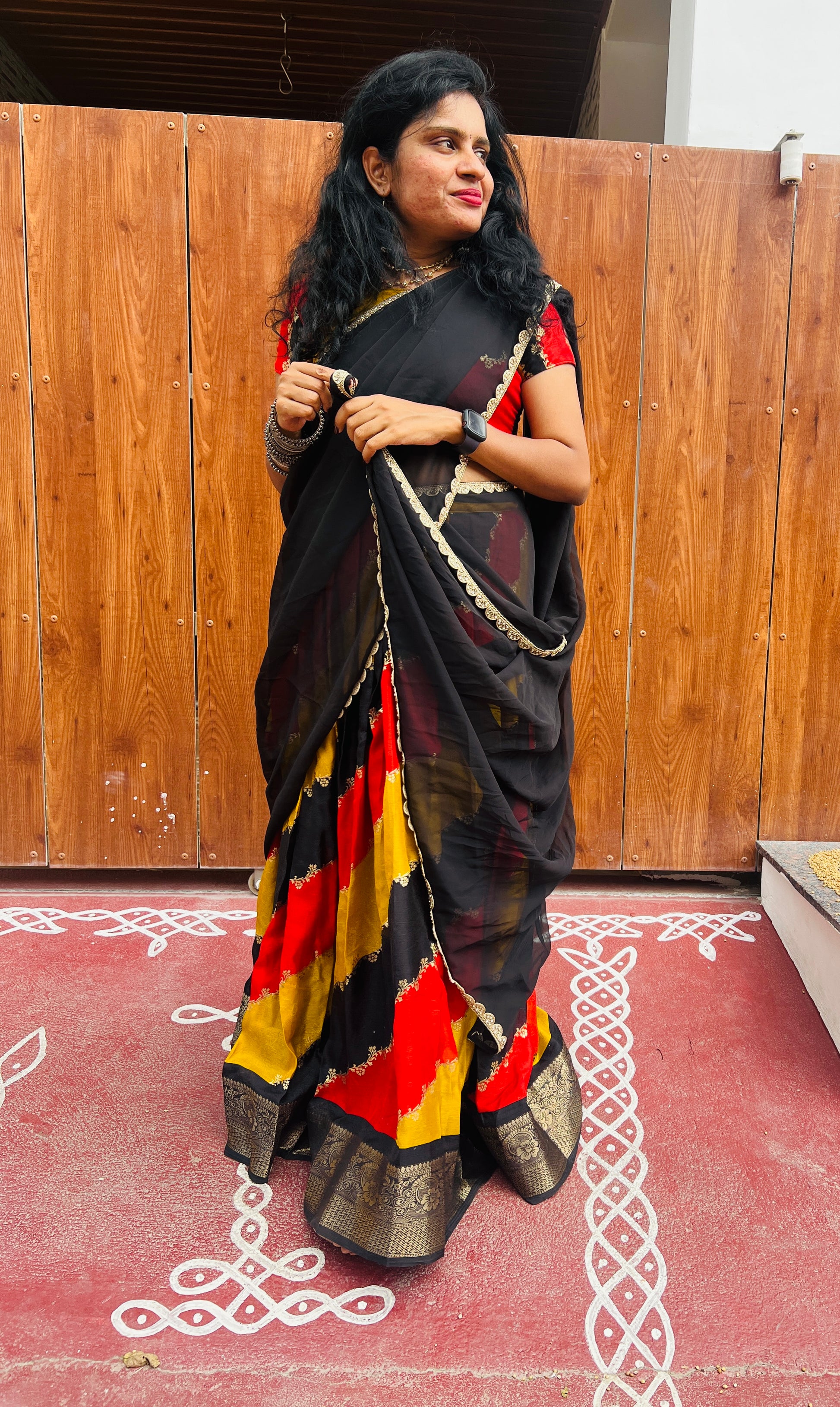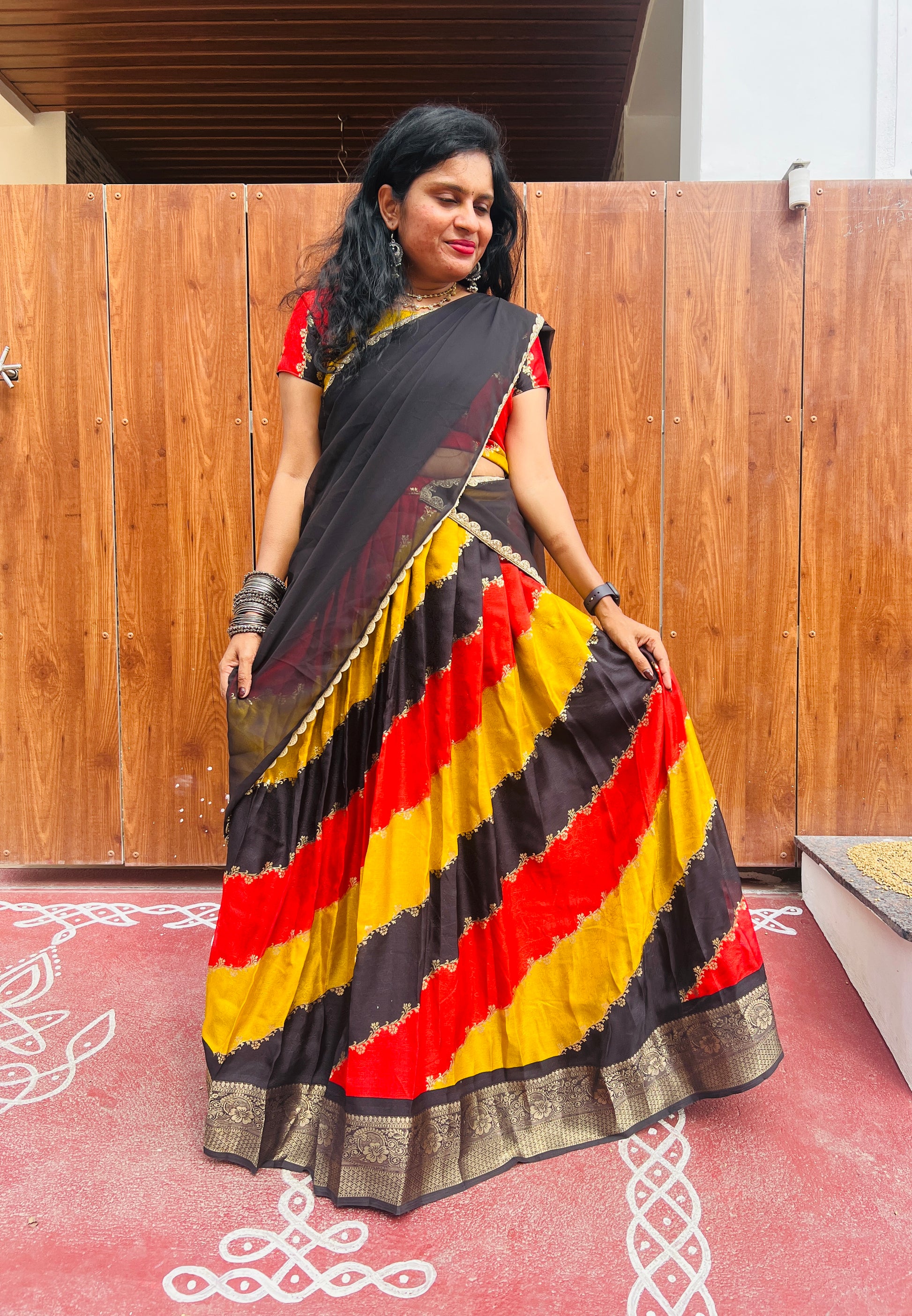 Pattu Pavadai is a traditional dress of South India. The paavadai or langa is a cone-shaped, long skirt that is pleated and tied around the waist, normally made of silk, that hangs down from the waist to the toes.