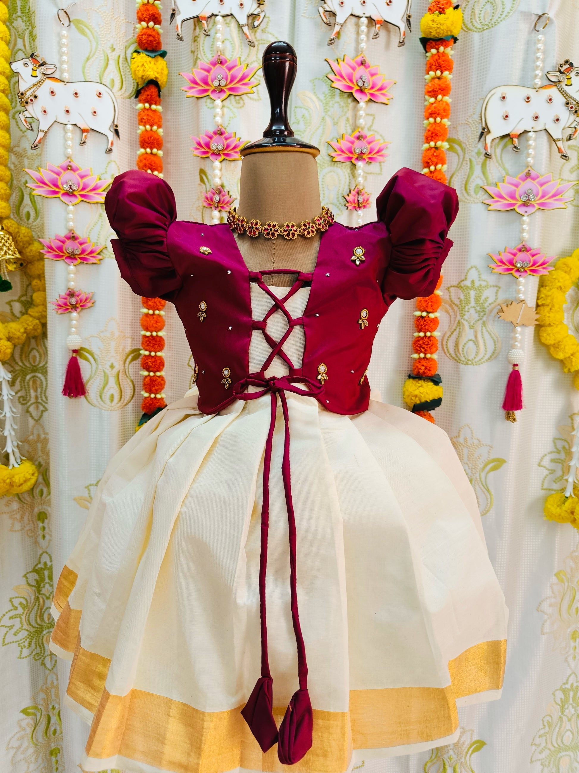 Maroon & White Kerala Coat Model Frock || Vishu Collection || 2024 ||
