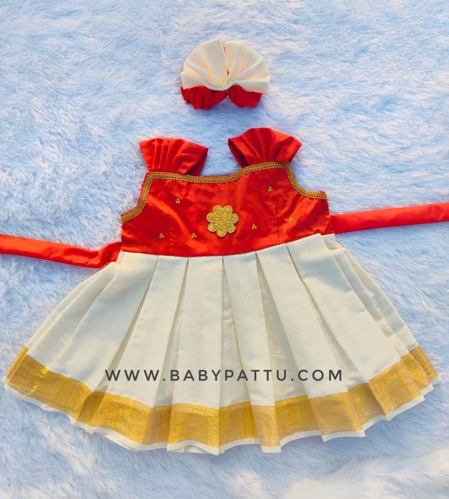 Pattu Pavadai is a traditional dress of South India. The paavadai or langa is a cone-shaped, long skirt that is pleated and tied around the waist, normally made of silk, that hangs down from the waist to the toes.