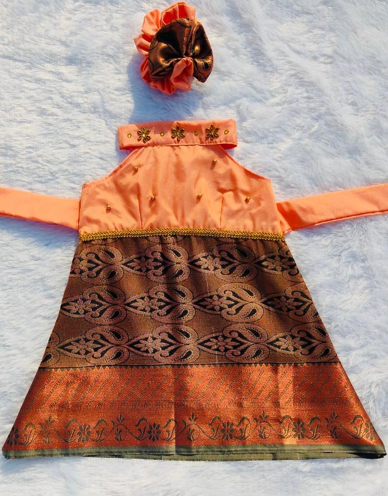 Pattu Pavadai is a traditional dress of South India. The paavadai or langa is a cone-shaped, long skirt that is pleated and tied around the waist, normally made of silk, that hangs down from the waist to the toes.