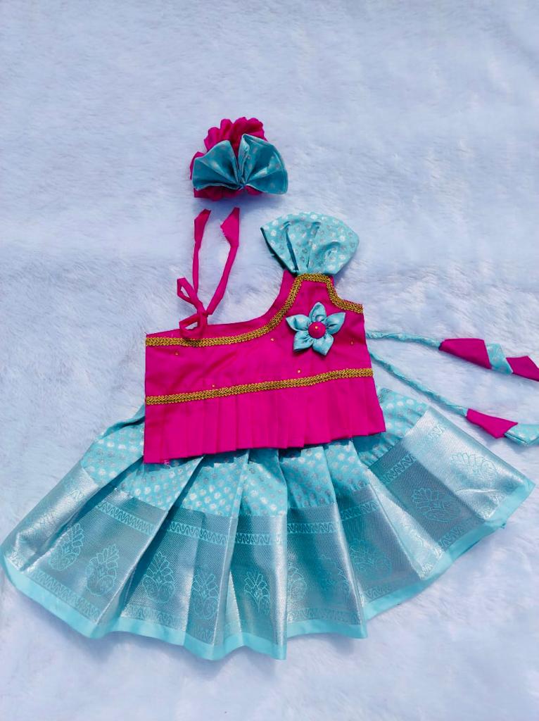 Pattu Pavadai is a traditional dress of South India. The paavadai or langa is a cone-shaped, long skirt that is pleated and tied around the waist, normally made of silk, that hangs down from the waist to the toes.