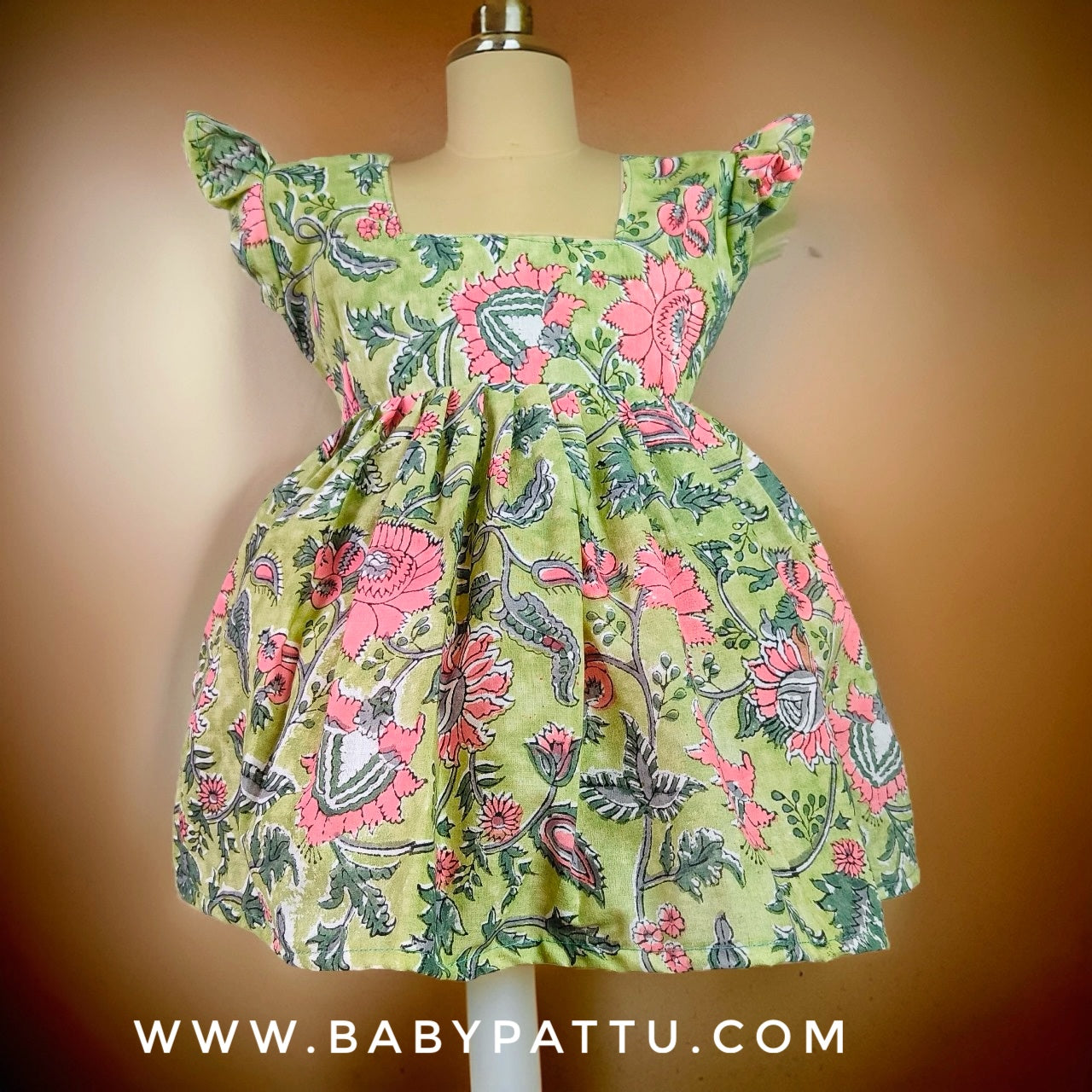 Pista Green Hand Block Pure Cotton Daily Use Frock