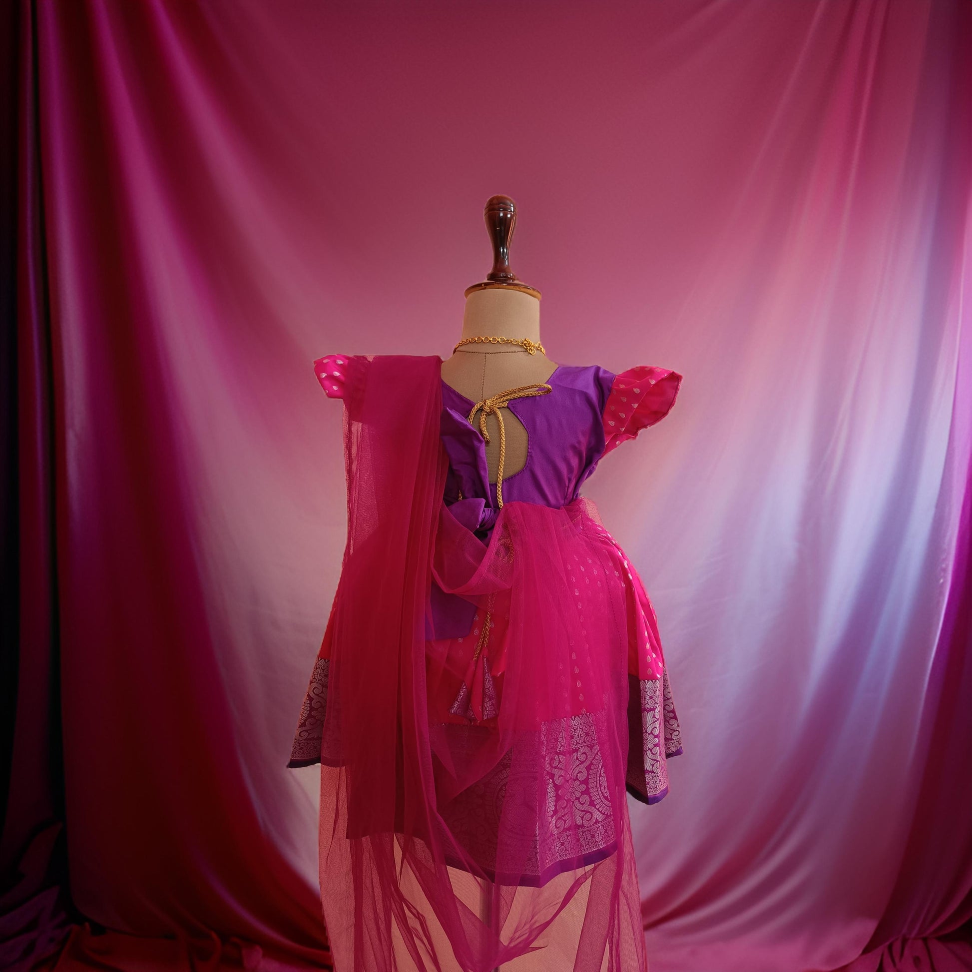 Princess Purple and Pink Frock with Detachable Net Grape Color Dupatta