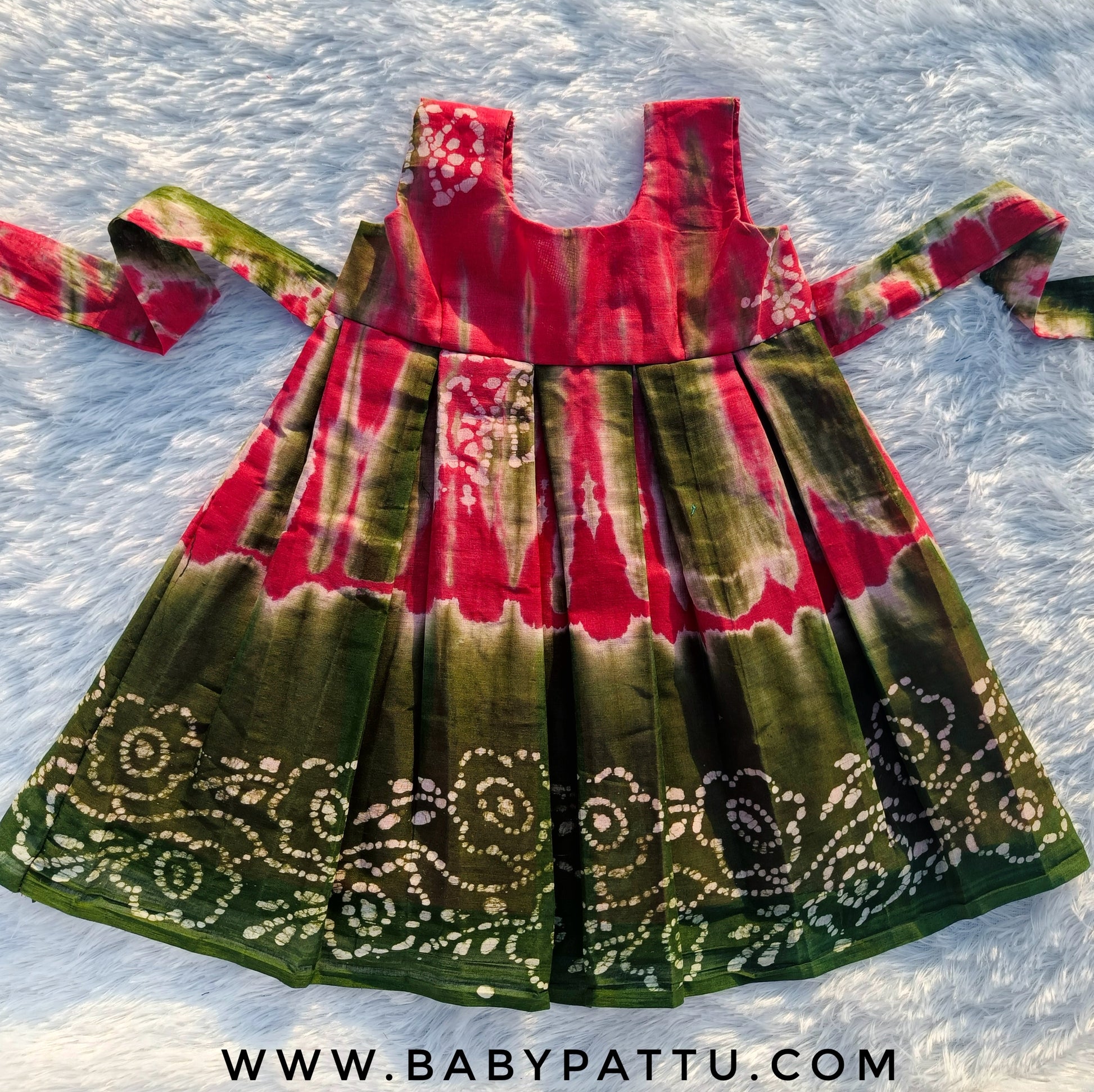 Pattu Pavadai is a traditional dress of South India. The paavadai or langa is a cone-shaped, long skirt that is pleated and tied around the waist, normally made of silk, that hangs down from the waist to the toes.