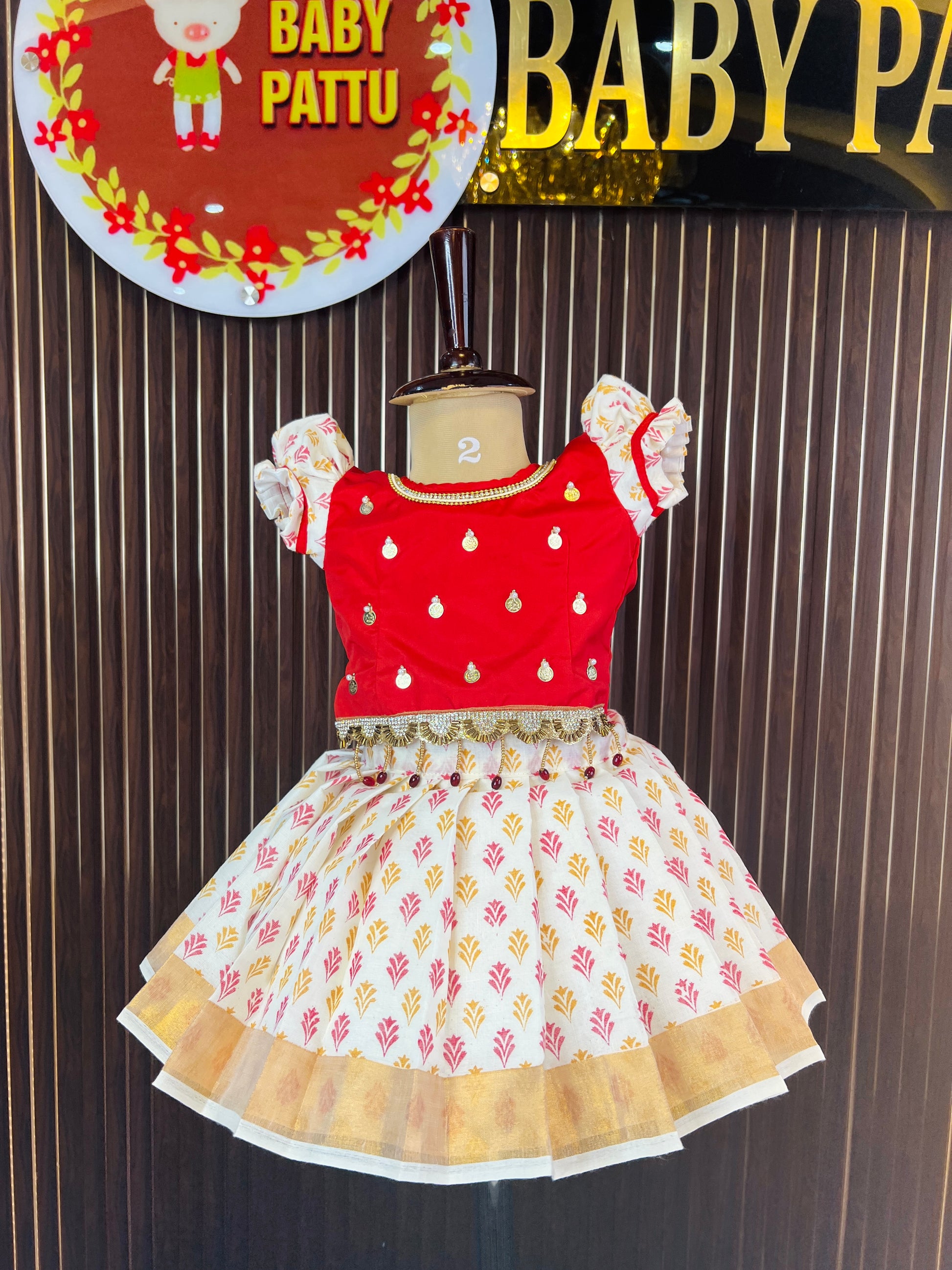 Red Color Top And Kerala Cotton Bottom Pattu Pavada - Onam 2025 collections