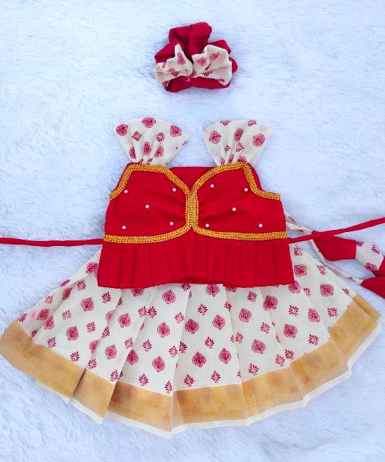 Red & White Kasuvu Cotton Pattu Pavada