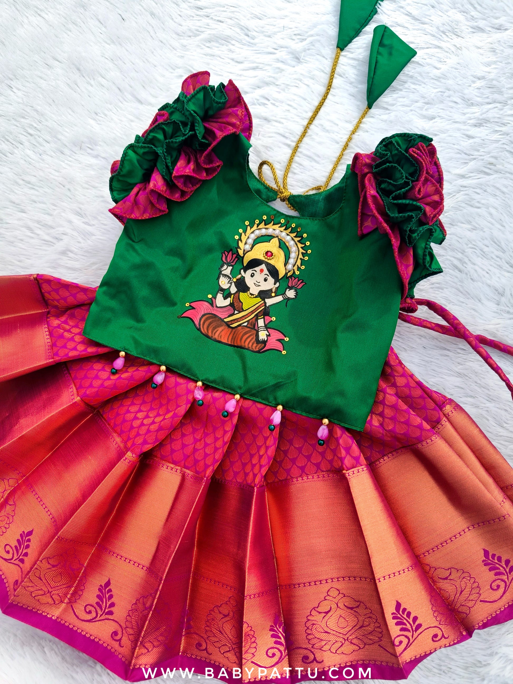 Varalakshmi collection Green Top and Pink Bottom Pattu Pavada